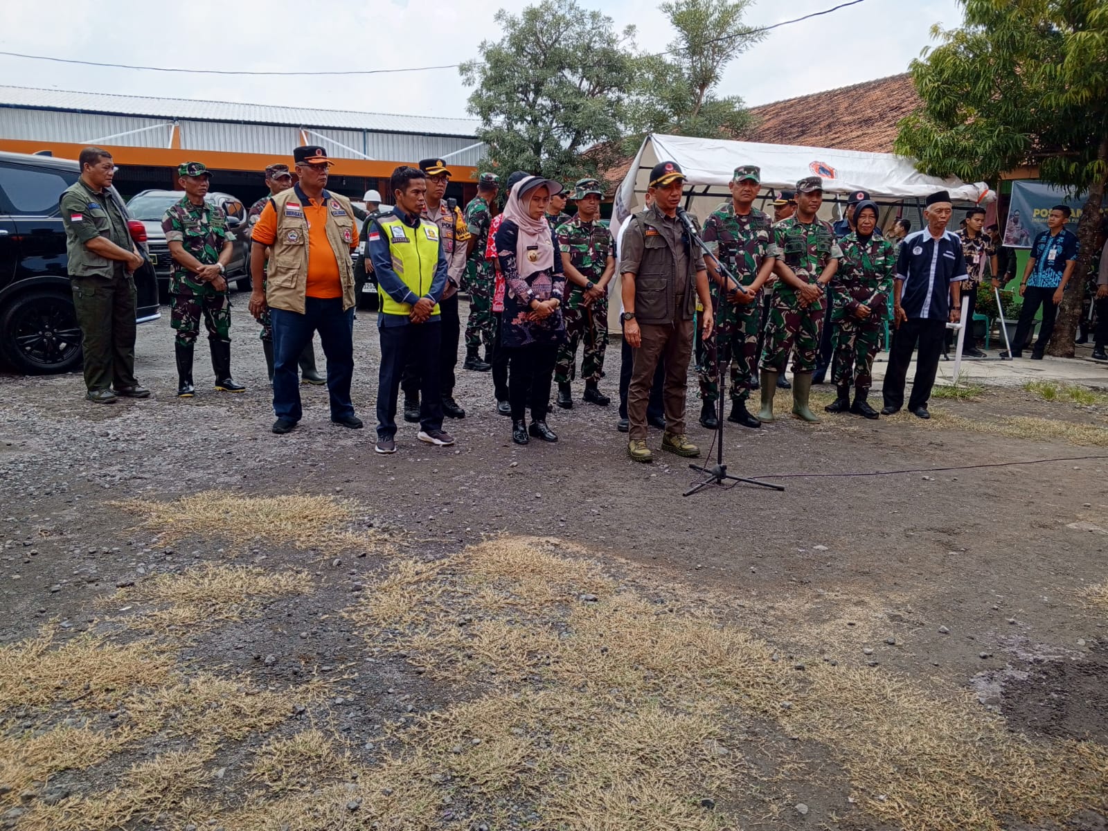 Rombongan tiba di lokasi pengungsian pukul 11.00 di sambut oleh Bupati Demak Eisti’anah beserta forkopimda Kabupaten Demak.