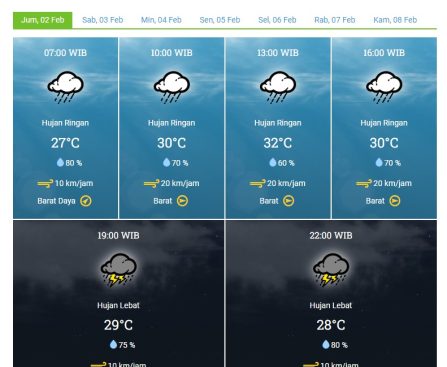 Demak – Menurut data terbaru dari Badan Meteorologi, Klimatologi, dan Geofisika (BMKG), cuaca di Kabupaten Demak pada hari Jumat, 2 Februari 2024, diprediksi akan cerah sepanjang pagi hari. Warga Demak diharapkan dapat menikmati suasana pagi yang terang dengan suhu udara yang berada pada kisaran 27°C hingga 32°C. Kelembaban udara diperkirakan berada di kisaran 60% hingga […]