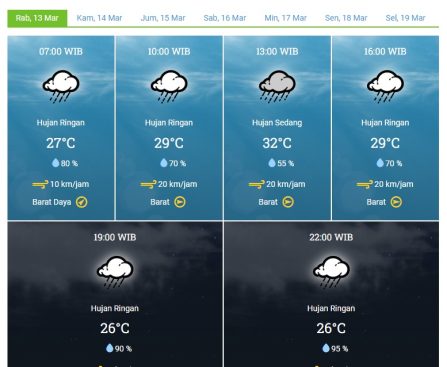 Demak- menurut prakiraan cuaca dari Badan Meteorologi , Klimatologi, dan Geofisika (BMKG), Kabupaten Demak akan kembali mengalami hujan sedang pada siang hari ini, Rabu (13/03/2024), sekitar pukul 13.00 WIB. Diperkirakan suhu udara akan mencapai 32°C dengan kelembaban udara 55%, dan kecepatan angin mencapai 20 km/jam yang bertiup dari arah barat. Pada sore hingga malam hari, […]