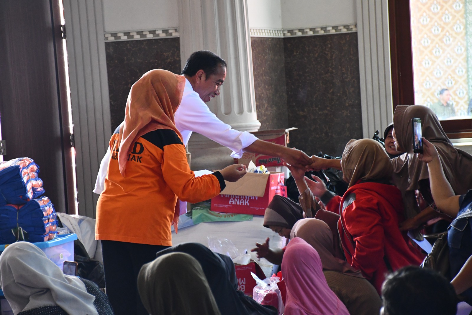 Dalam kunjungan tersebut Jokowi juga memberikan bantuan kepada korban banjir dan memberikan motivasi kepada anak-anak korban banjir untuk tetap giat belajar. (kominfo/ist)