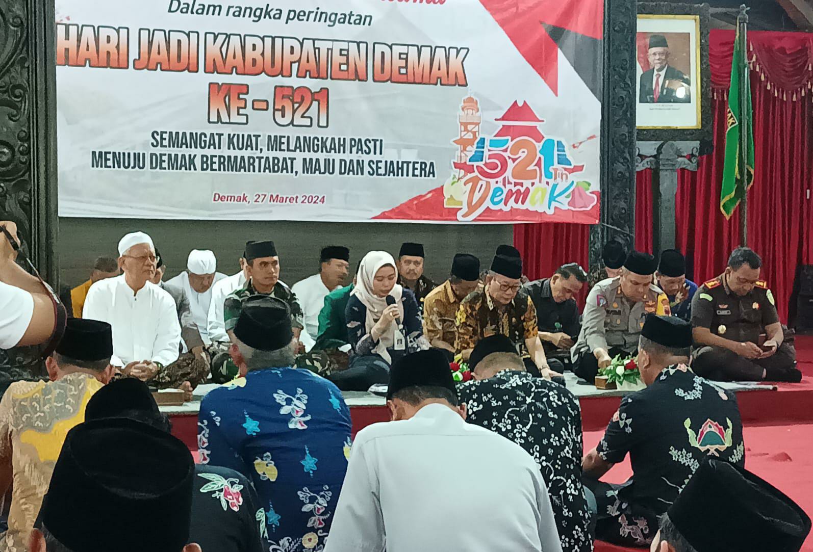 Hadir dalam kesempatan tersebut para bupati Demak Eisti’anah, Sekda Demak Ahmad Sugiharto, unsur Forkopimda, ulama dan ASN dilingkungan Pemkab Demak.