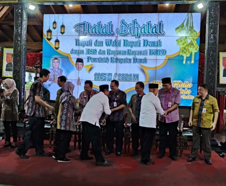 Demak – Ribuan ASN dan karyawan BUMD di lingkungan Pemerintah Kabupaten Demak berhalal bihalal dengan Bupati Demak Eisti’anah di hari pertama masuk kerja. Bupati Eisti’anah didampingi Wakil Bupati Ali Makhsun, Sekda Akhmad Sugiharto beserta Asisten menerima kunjungan silaturahmi ASN di Pendopo Satya Bhakti Praja, Selasa (16/04/24). Ditengah-tengah acara menunggu Bupati Eisti’anah, Wakil Bupati , Sekda […]