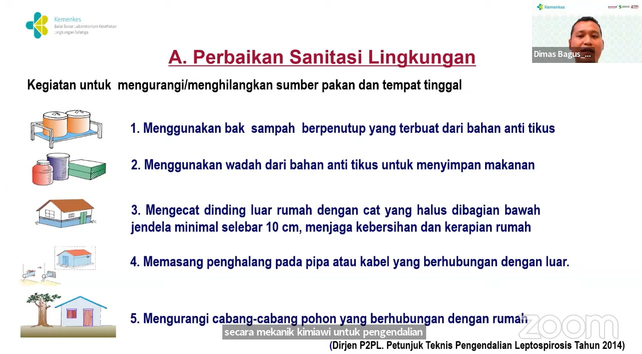”Leptospirosis merupakan salah satu zoonosis yang ditularkan melalui kencing tikus yang erat hubungannya dengan sanitasi lingkungan masyarakat,” kata dr. Irma.