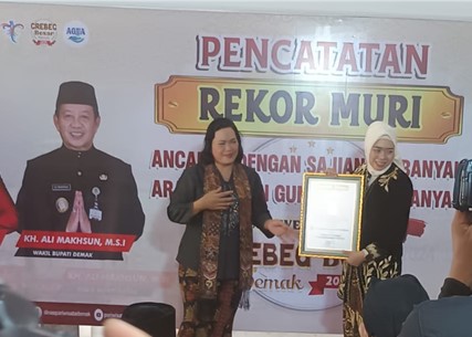 Demak – Pemkab Demak kembali catatkan Rekor Muri (Museum Rekor Indonesia) pada event Grebeg Besar 2024. Dengan Ancakan Sajian Terbanyak serta Gunungan Terbanyak. Penyerahan penghargaan perwakilan dari MURI Semarang, Sri Widayati kepada Bupati Eisti’anah di pintu gerbang Makam Kadilangu, Senin (17/6/24) setelah pelaksanaan penjamasan pusaka Sunan Kalijaga. Penghitungan Sego ancakan dilakukan MURI pada saat tradisi […]