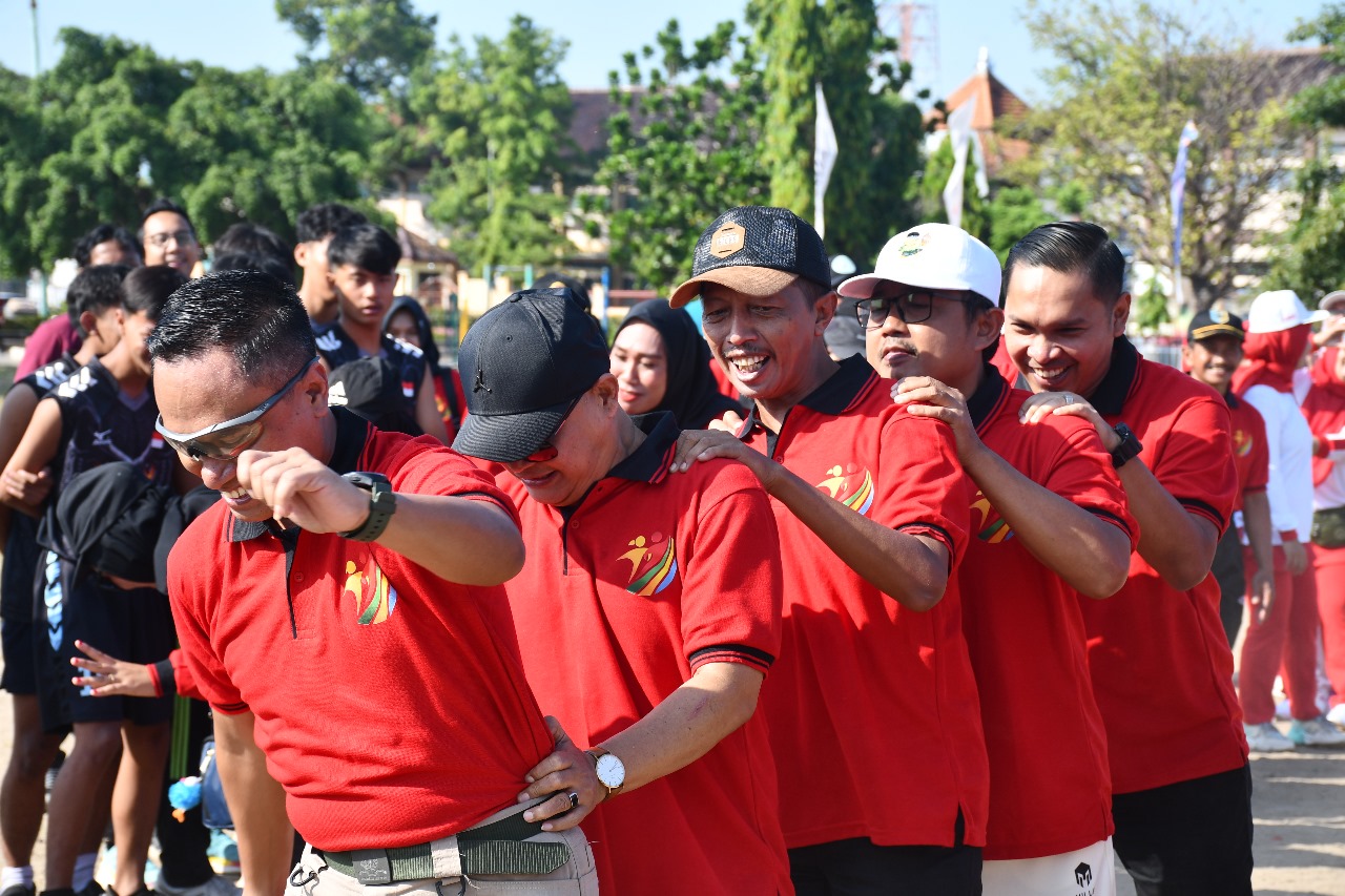 Demak – Dalam pertandingan Eksebisi seusai upacara pembukaan FORKAB Demak 2024, dilakukan pertandingan terompah panjang dan bola sundul dengan tim pemain unsur forkopimda, pimpinan OPD dan BUMD.