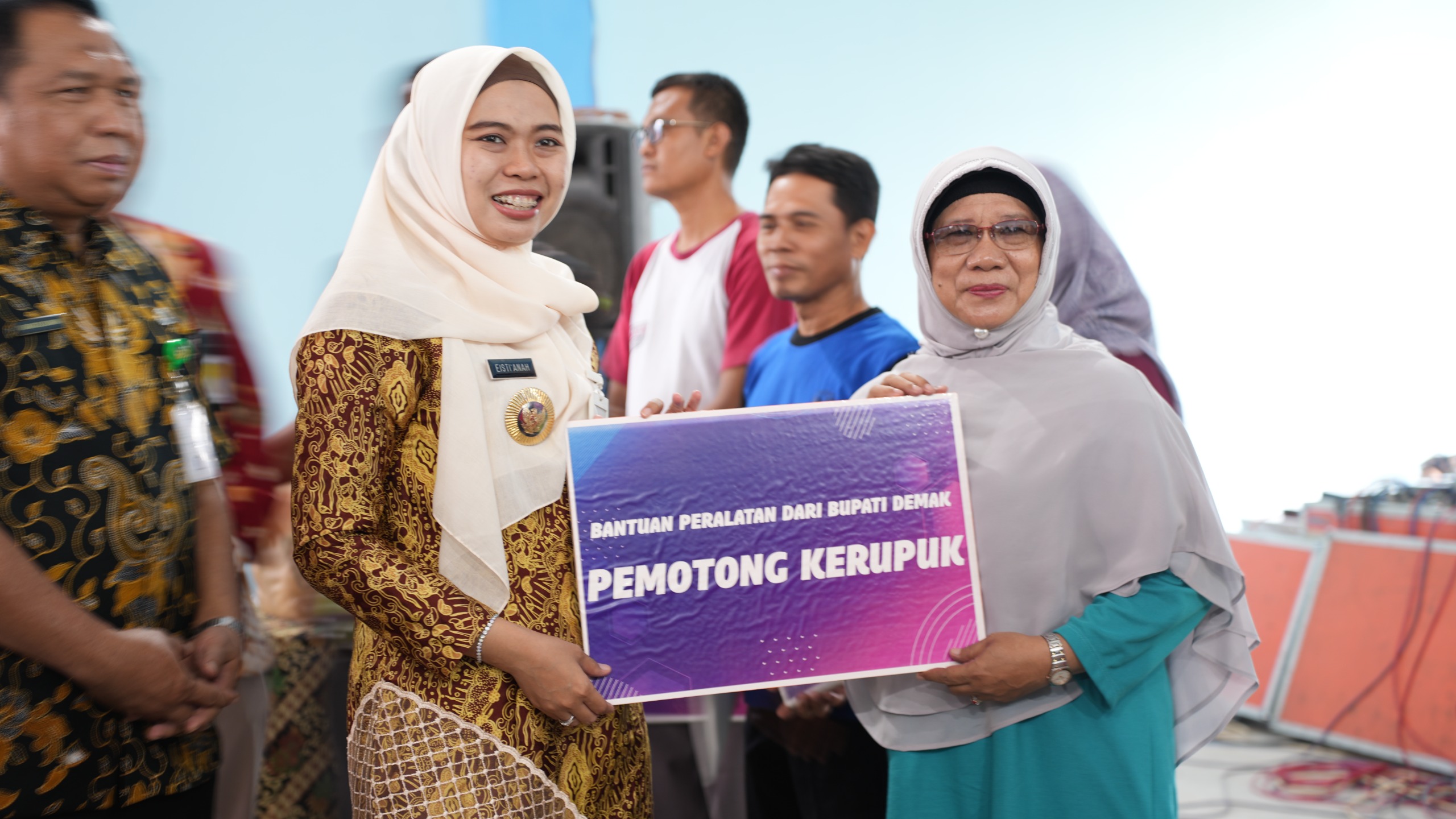 Dalam kesempatan tersebut Bupati juga menyalurkan bantuan berupa mesin oven, vaccum cleaner, perajang singkong, continous sealer, penggiling kedelai dan pemotong krupuk.
