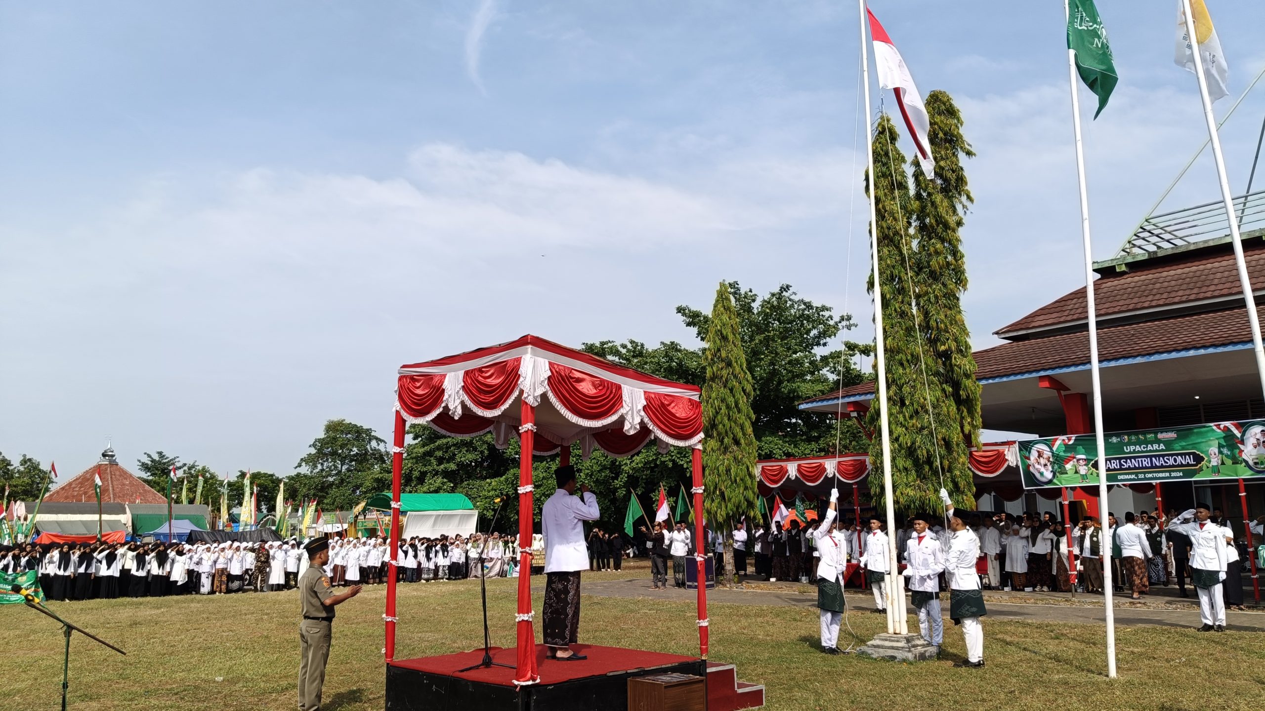Demak – Ribuan santri di Kabupaten Demak mengikuti upacara Hari Santri Nasional (HSN) tahun 2024 di halaman Balai Latihan Kerja (BLK) Kabupaten Demak. Selasa, (22/10/2024).