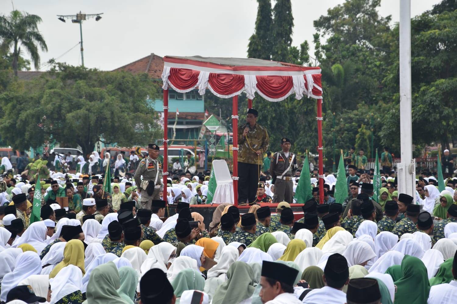 Demak – Ribuan warga Nahdhatul Ulama ( NU) menghadiri apel bersama dalam rangka puncak rangkaian memperingati hari lahir (Harlah) NU ke 102 tingkat PCNU Kabupaten Demak yang di pusatkan di alun-alun Demak, Senin (27/01/25).