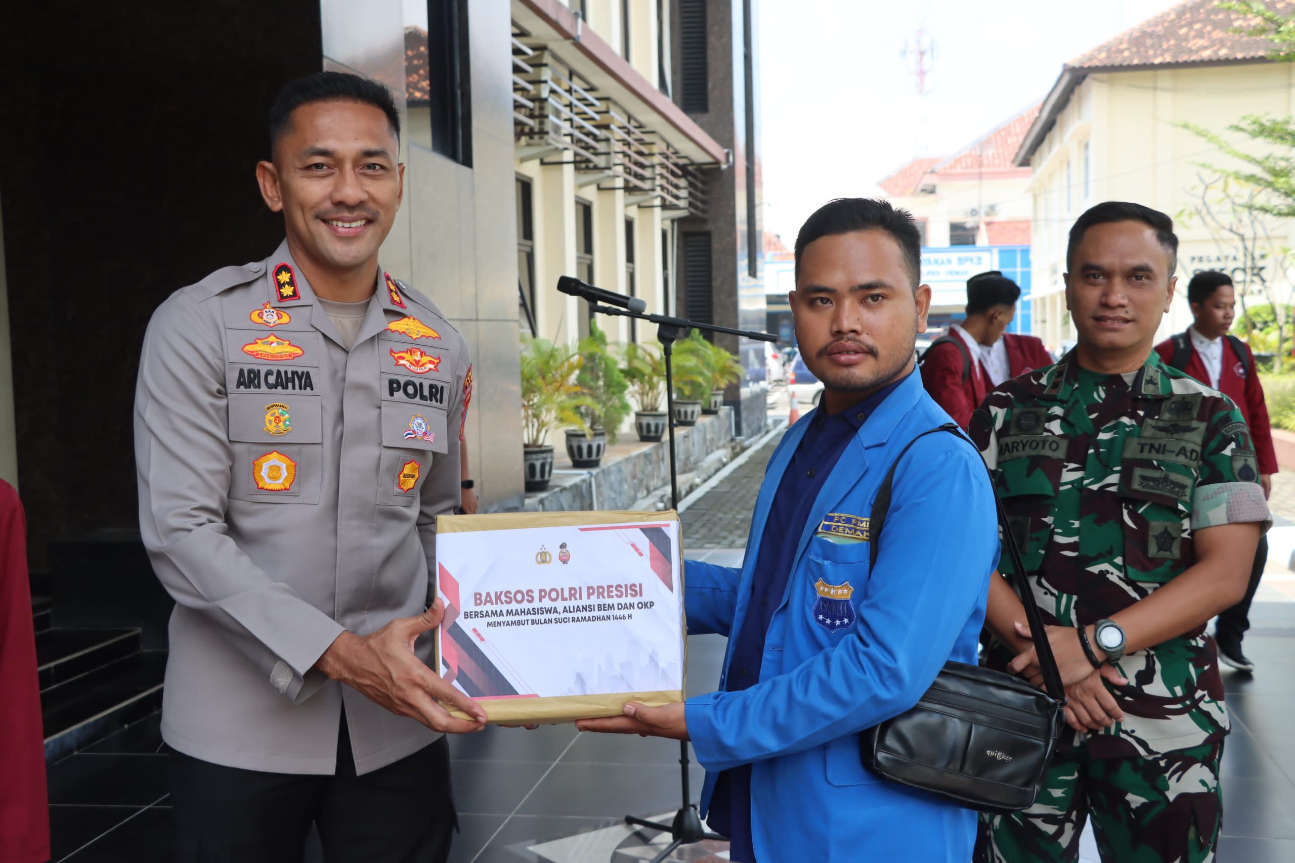 Demak – Sebanyak 250 dus paket sembako disalurkan Polres Demak bersama Aliansi Badan Eksekutif Mahasiswa (BEM) dari BEM STAI IC Demak, BEM Unisfat Demak dan Pergerakan Mahasiswa Islam Indonesia (PMII) Kabupaten Demak kepada mahasiswa dan masyarakat yang membutuhkan, Kamis (27/02/25) bertempat Mapolres Demak.