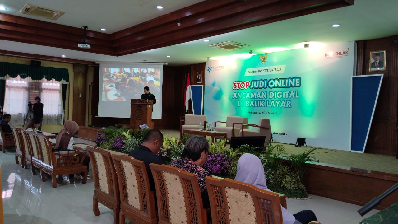 Demak – Dinas Komunikasi dan Informatika (Dinkominfo) Kabupaten Demak mengikuti Forum Diskusi Publik “Stop Judi Online Ancaman Digital di Balik Layar” yang di selenggarakan oleh kementrian Komdigi di Balai Besar Penjaminan Mutu Pendidikan (BBPMP) Semarang, Kamis, (15/05/2025).