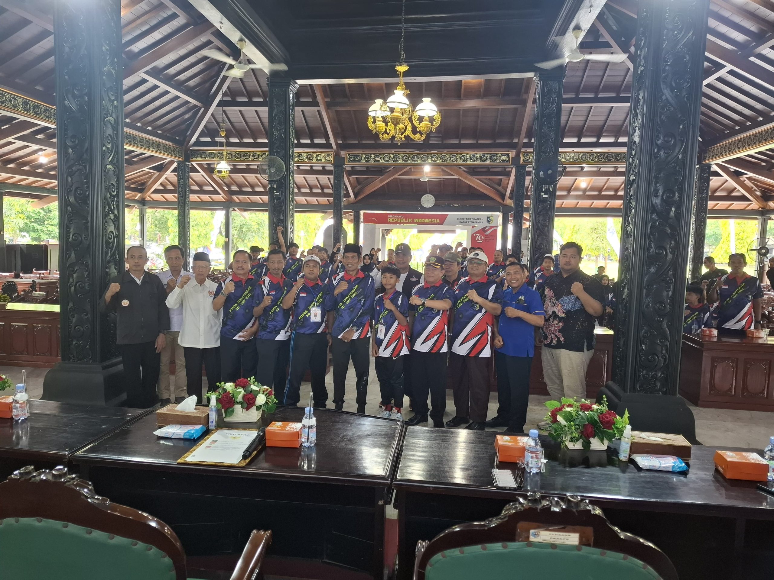 Demak – Wakil Bupati Demak Muhammad Badruddin melepas 49 atlit dan pelatih yang akan berlaga dalam Pekan Olahraga Pelajar Daerah (POPDA) Tingkat Provinsi Jawa Tengah, jenjang SD – SMP dan sederajat. Acara pelepasan berlangsung di Pendopo Satya Bhakti Praja, Selasa (20/05/25) pagi.