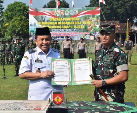 DEMAK – Pelaksanaan Tentara Manunggal Membangun Desa (TMMD) Sengkuyung Tahap II Tahun 2025 di Desa Babat, Kecamatan Kebonagung resmi ditutup. Upacara penutupan dipimpin langsung Komandan Kodim 0716/Demak Letkol Kav Maryoto, Rabu (04/06/2025). Diawali dengan laporan hasil pelaksanaan TNI Manunggal Membangun Desa Sengkuyung Tahap Il TA 2025 oleh Pasi Ter Kapten Inf Irwandi, dilanjutkan dengan penanggalan […]