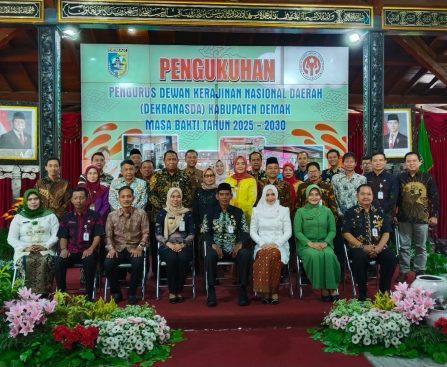 Demak – Ketua Dewan Kerajinan Nasional Daerah (Dekranasda) Kabupaten Demak, Muh Zaky Maardi, mengukuhkan 29 orang pengurus Dekranasda Kabupaten Demak Periode 2025-2030. Acara pengukuhan berlangsung di Pendopo Satya Bakti Praja, Kamis (24/07/25). Turut hadir menyaksikan Bupati Demak Eisti’anah, Wakil Bupati Muhammad Badruddin serta Sekda Akhmad Sugiharto. Dalam kesempatan tersebut, Bupati Demak Eisti’anah mengucapkan selamat dan […]