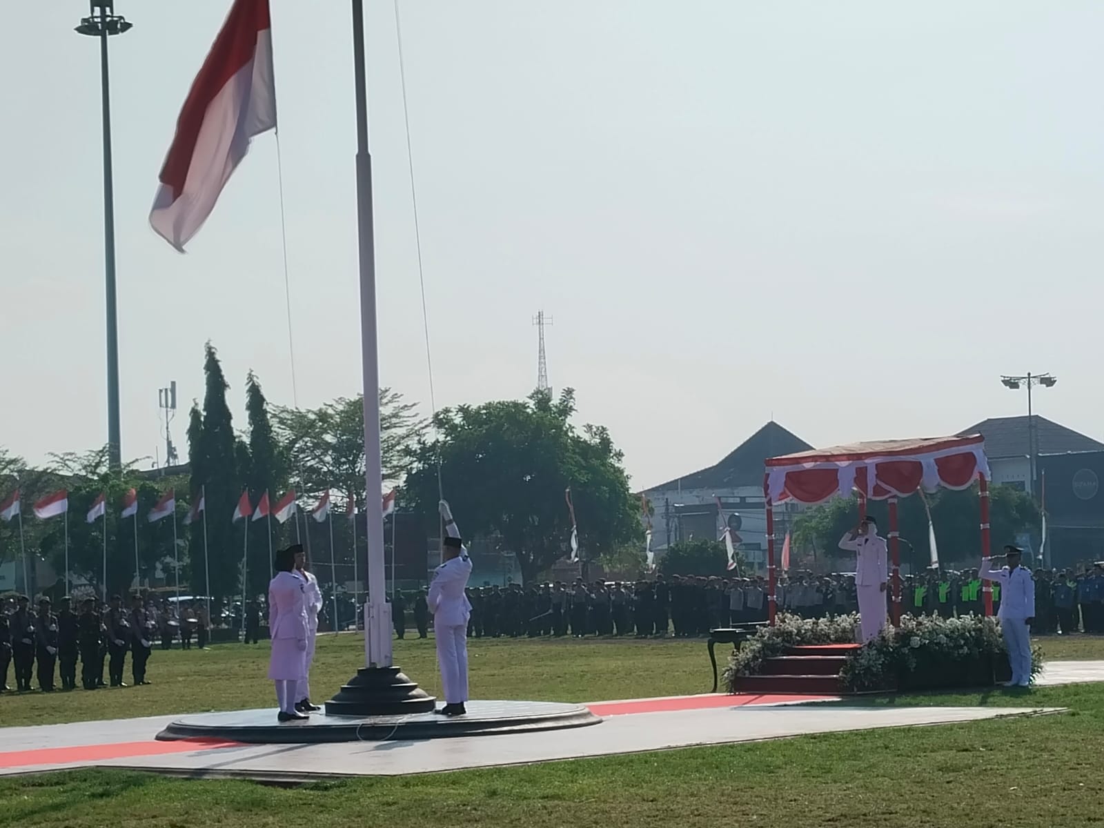 Pelaksanaan upacara dimulai pukul 07.40 WIB, mengingat upacara detik-detik proklamasi dari Istana Merdeka Jakarta dilaksanakan pukul 10.00 wib. Yang mewajibkan unsur pimpinan daerah mengikuti dan menyaksikan melalui streaming.