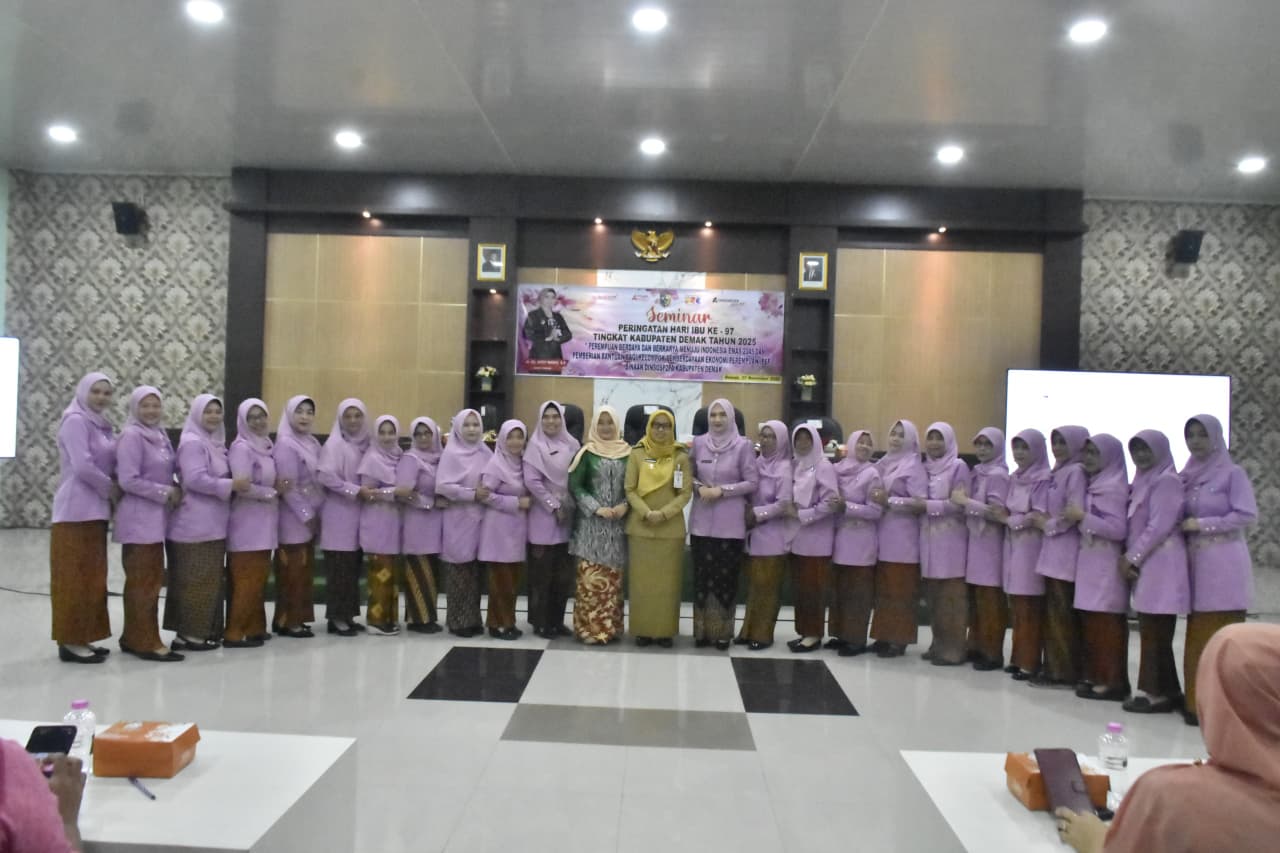 Demak – Bupati Demak Eisti’anah hadir pada kegiatan seminar dengan tema “Perempuan Menyapa, Perempuan Berdaya Menuju Indonesia Emas 2045” dalam rangka memperingati Hari Ibu ke 97 Tingkat Kabupaten Demak Tahun 2025, dan Pemberian Bantuan bagi Kelompok Peningkatan Produktivitas Ekonomi Perempuan (PPEP) Binaan Dinsos P2PA Kabupaten Demak. Bertempat di Aula Dinsos P2PA yang diikuti oleh Ketua TP PKK Ketua TP PKK, Ketua GOW, Ketua DWP beserta Unsur Pelaksana se Kabupaten Demak, Ketua TP PKK Tingkat Kecamatan se Kabupaten Demak, Plt. Kepala DinsosP2PA Kabupaten Demak. Ustadz Usep Badruzzaman selaku narasumber Kelompok Pemberdayaan Ekonomi Perempuan Binaan Dinsos P2PA Kabupaten Demak, Perwakilan Paralegal, Media Massa, dan GNOTA Kabupaten Demak. Selasa, (25/11/2025).