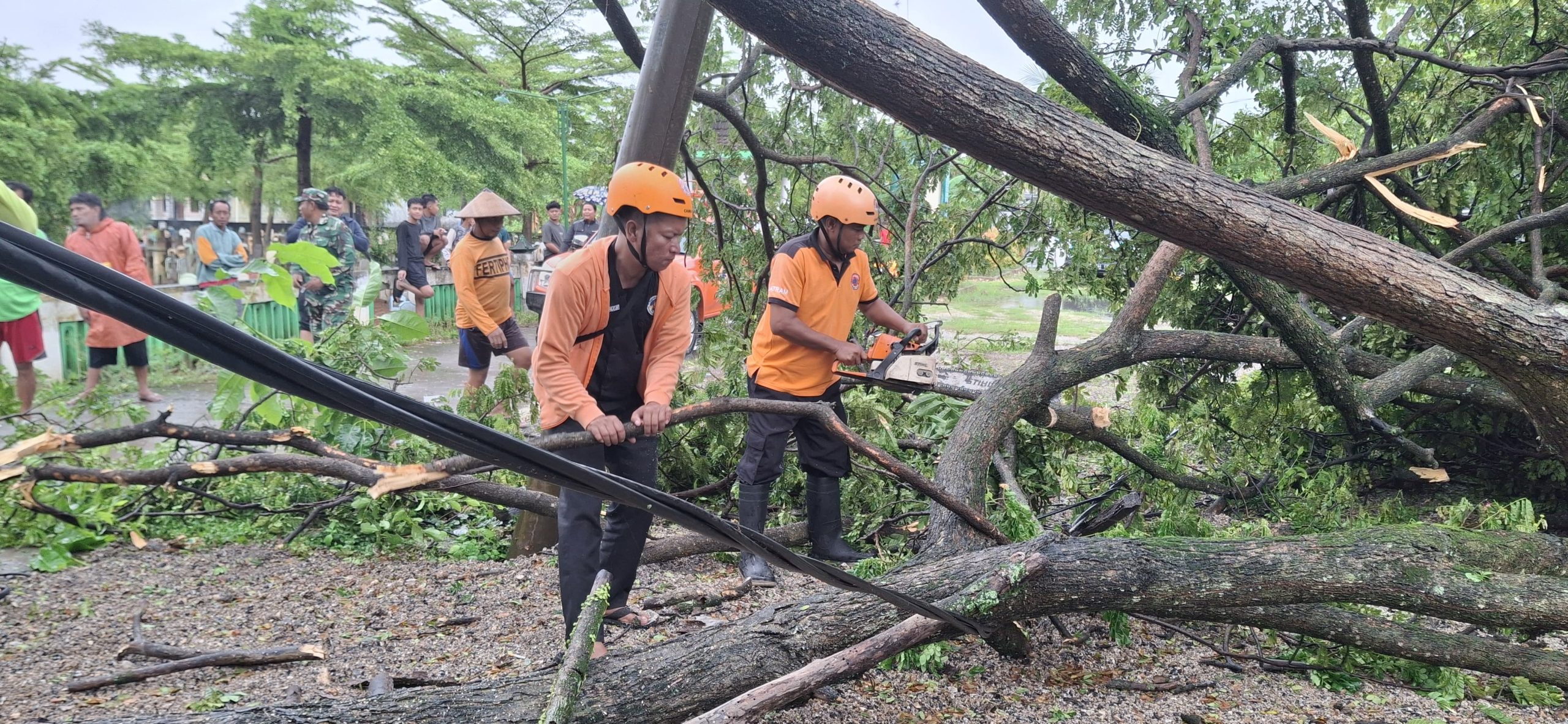 Demak – Hujan lebat yang disertai angin kencang di wilayah Kecamatan Karanganyar Demak pada Senin (12/1/2026) siang mengakibatkan sebuah pohon trembesi tumbang dan menutup akses jalan di Desa Wonorejo. Setelah mendapat laporan warga, personil BPBD bergerak ke lokasi melakukan penanganan di lokasi kejadian, pada pukul 15.30 WIB.