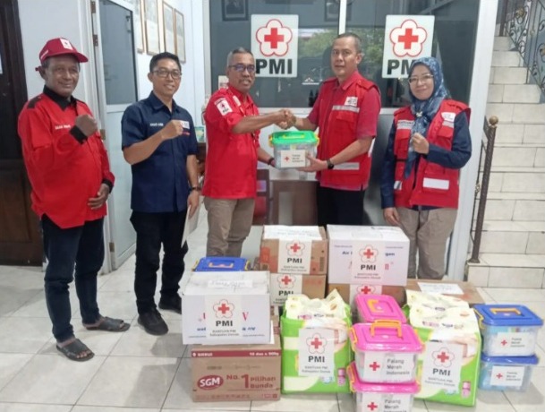 Bantuan berupa obat-obatan dan kebutuhan pokok diserahkan oleh personel PMI Demak ke Sekretaris PMI Jepara Arif Darmawan dan beberapa beberapa personal PMI Jepara.