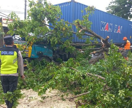 Demak – Pohon akasia tumbang karena tersangkut kontainer dan menimpa kendaraan besar tersebut. Peristiwa ini terjadi sekitar pukul 11.00 WIB di Desa Ngelo Wetan, Kecamatan Mijen, Senin (26/01/26). Dalam insiden tersebut kabin truk mengalami kerusakan berat, namun tidak ada korban jiwa. Berawal saat truk tronton melaju terlalu ke sisi jalan. Box kontainer yang dibawa kendaraan […]