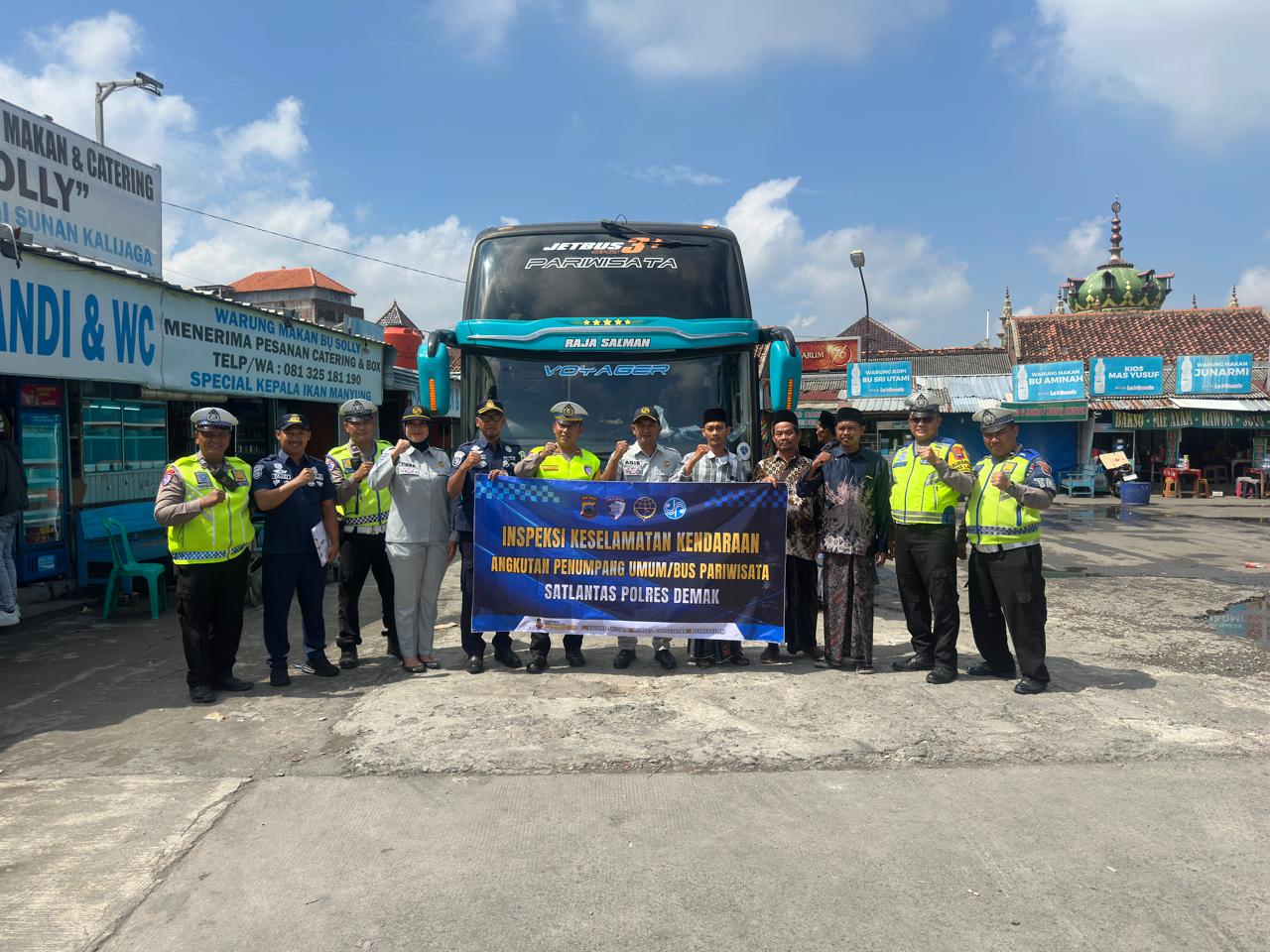 Demak – Mendukung pelaksanaan Operasi Keselamatan Candi 2026, Satuan Lalu Lintas (Satlantas) Polres Demak bersama Dinas Perhubungan serta Jasa Raharja menggelar inspeksi keselamatan berkendara. Sasaran inspeksi kendaraan angkutan wisata yang beroperasi di kawasan wisata religi Kadilangu, Rabu (11/2/2026).